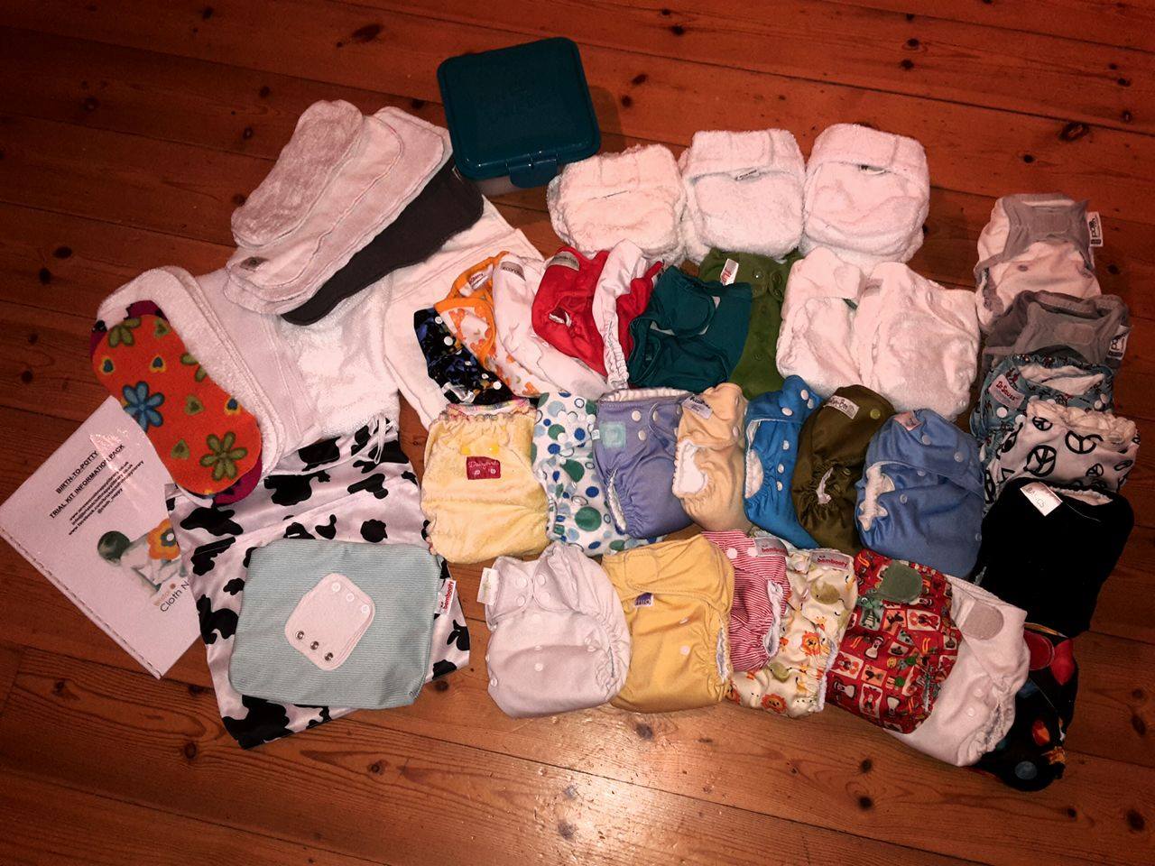 Our volunteers who have experience in using cloth nappies on their own babies have put together kits, suitable from newborn to potty training, and written guidelines on how to use them.