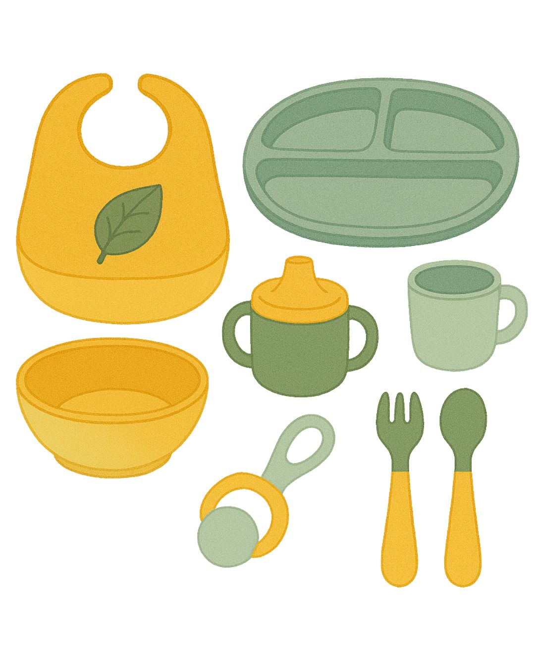 Weaning kits include a selection of bowls, cutlery, cups and bibs.